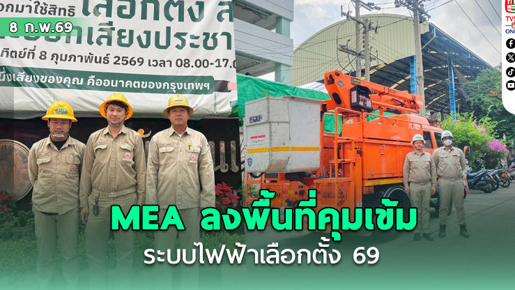 MEA หรือการไฟฟ้านครหลวง ลงพื้นที่ปฏิบัติงานเต็มกําลังในวันเลือกตั้ง 8 กุมภาพันธ์ 2569 จัดชุดเฉพาะกิจกว่า 500 นาย กระจายตัวดูแลความมั่นคงระบบไฟฟ้าครอบคลุม 49 เขตเลือกตั้ง ในพื้นที่กรุงเทพมหานคร นนทบุรี และสมุทรปราการ พร้อมเปิดศูนย์ปฏิบัติการฯ ติดตามสถานการณ์ใกล้ชิด เพื่อสนับสนุนภารกิจระดับชาติให้ราบรื่นไร้อุปสรรค